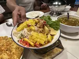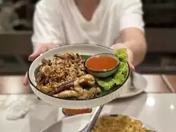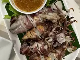The restaurant serves a variety of food, including Isaan food, Southern food, and seafood, as well as various types of drinks. But the most popular dishes are seafood. Recommended dishes include grilled shrimp, razor clams, grilled squid eggs, oyster omelet (similar to fried oysters, a local food of Phuket), fried squid tentacles with garlic, etc. The seafood sauce here is deliciously spicy.