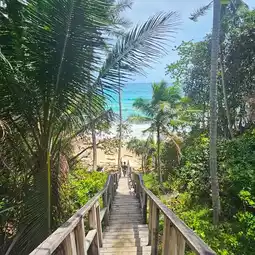 A check-in point that is not very well known. But if anyone comes to Nai Thon Beach, comes to play in the water with the beautiful beach, clear sea water, must come to see the wooden bridge that looks 3D when looking up and down.