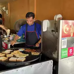 This delicious roti shop is called Roti Taew Nam, an old and delicious shop that both Phuket locals and tourists love for its delicious flavor. The roti dough is crispy and fragrant, eaten with chicken sausage, fried egg, or chicken or beef massaman curry, it all goes well together. This shop is at the intersection Taew Nam, near the Phuket Clock Tower building, a familiar symbol of the city. It's a bit hard to find parking, but use your perseverance to park near the nearby park, then you'll be able to taste the delicious and impressive roti curry. #This content is of quality.