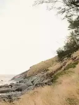 - Walk up the grass on the slanted cliff for about 200 meters until you reach the corner of the rock platform that we photographed. (There are some visible trails for us to follow)