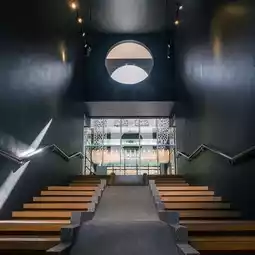 The swimming pool has a super cool design