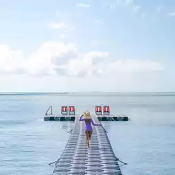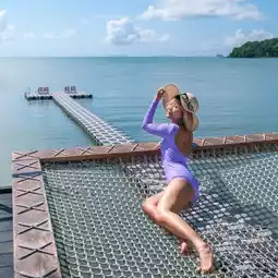 There is a floating pontoon with a hammock for sitting and taking pictures with a wide view