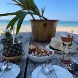 If you want to eat in a chic atmosphere by the sea, you have to come here. The Lazy Coconut is a very beautiful shop, decorated in a cool tropical style. There is an infinity pool. The atmosphere is great because it is located on Bang Tao Beach, a quiet beach, perfect for relaxing. You can also watch the beautiful sunset from the beach. ☀️