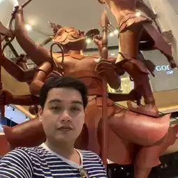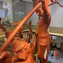 After eating, let's go for a walk and take pictures. Don't go up the escalator to another floor yet, because on the G floor, there is still a highlight that you can't miss, "The Great Epic", which was inspired by literature and became a large statue of a giant fighting god. It is as big as a 2-story building, standing tall as a landmark waiting for us to take a selfie together.