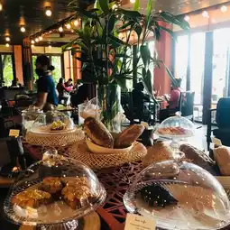 A cafe in Sri Panwa Hotel. The atmosphere is great. You can see the sea view. Especially in the evening before the sun sets, the sunlight is soft. The surrounding area is surrounded by nature. It's like being in the middle of the forest. It feels like sitting and sipping tea or coffee under a big tree at the end of Cape Panwa. It's convenient to get there. There's plenty of parking. You can park under the building. There's an elevator in the parking lot. Press the elevator to the R floor. Baba Soul Cafe TU Bar Rooftop can walk across the bridge to the cafe. Cafe lovers who like to take pictures and check in shouldn't miss it.