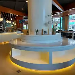 👉 The hotel is beautifully decorated, the lobby is very spacious, there is a restaurant on the 1st floor and it is also a cafe. Order coffee, sit and relax because the wifi is very good. They also have cakes and pastries that look delicious.