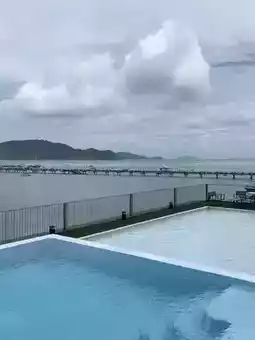 The special thing is that the view from every room is a sea view. The bed faces the view and the bathtub also has a sea view. The room is spacious and large. The swimming pool is on the rooftop which is quite private. You can see the view of Chalong Bay, making your vacation in the rainy season not boring anymore.