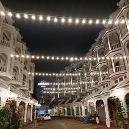 👍 There is a beautiful swimming pool to swim in or take pictures, with a Sino-Portuguese building in white and red as a bright and beautiful backdrop. Plus, this place also has a fitness room.