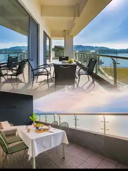 • The hotel is spacious, a beautifully designed building, no elevator, good atmosphere, with a mountain behind, a large swimming pool, a room that opens the door and can get into the pool, and a fitness room