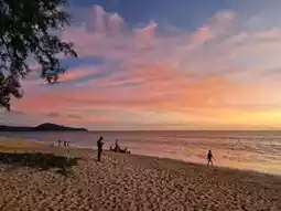 In addition to being known as the most beautiful seaside plane-watching spot, Mai Khao Beach is also a beautiful sunset viewing point. Because the beach is open and quiet, there is a long line of pine trees along the beach providing shade for relaxing.