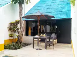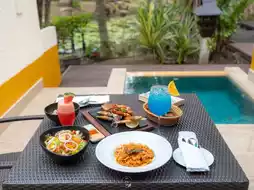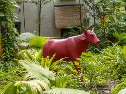 When you enter, you'll think you're in Bali. Inside, there are lots of trees and shade. You can relax surrounded by nature and it's also close to the sea.