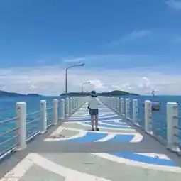 You can walk and enjoy the beauty of the sea, feel the breeze and sunlight all the way to the pier. There is a pavilion at the end of the bridge.