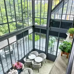THE COFFEE CLUB Phuket Old Town คาเฟ่เรียบหรูสไตส์โมเดิร์นใจกลางเมืองภูเก็ต ที่มาในธีมเรือนกระจกสีดำกลางสวน ที่นี่บรรยากาศดีมาก บริเวณรอบๆ ถูกจัดและตกแต่งด้วยต้นไม้ใบหญ้าให้ฟีลเหมือนสวนสไตล์อังกฤษ ส่วนตัวร้านเป็นเรือนกระจกหลังใหญ่ ภายในแบ่งออกเป็นสองชั้น โปร่ง โล่ง สบายตา มีมุมให้เลือกนั่งเยอะ ถ่ายรูปออกมาเด็ดทุกมุม นั่งมองวิวจากชั้นบนมองลงไปก็สวย ที่นี่เค้ายังให้บริการแบบ all day dining มีเมนูมากมายให้เลือกสรรกันต้องบอกเลยว่าเป็นร้านเดียวที่ครบครันจริงๆ มีครบทั้งอาหาร เครื่องดื่ม และขนมหวาน ตอบโจทย์ไลฟ์สไตล์ของคนทุกแบบ จะมานั่งทำงานจิบกาแฟ หรือจะมาดินเนอร์กับแฟนก็เหมาะ แนะนำให้มาช่วงบ่ายคล้อยเย็นตอนแสงอาทิตย์สีส้มสาดเข้ามาในร้านคือสวย บรรยากาศรอบด้านธรรมชาติมากมีที่นั่งทั้งภายในและภายนอกร้าน