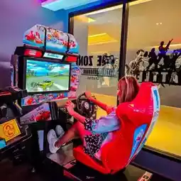 In the hotel area, there is an E-Zone room, a game room, a kids club for children, and an outdoor saltwater swimming pool with both an adult and a children's pool.