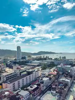 The Chinese restaurant is on the rooftop, overlooking the Patong Beach. The sea is clear and blue. The view is amazing.