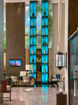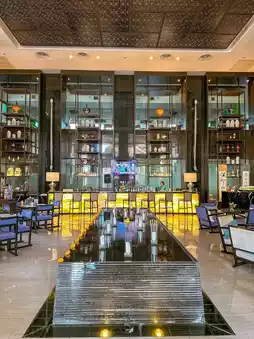 The lobby area is spacious and comfortable. There is a bar and lounge where you can choose your welcome drink card.