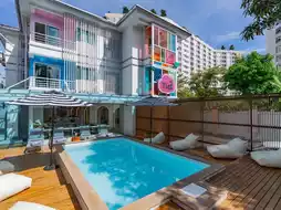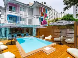 The Tint at Phuket Town is located in the heart of Phuket Town, next to Limelight Shopping Mall, convenient for shopping and finding food. The hotel has a variety of bright and beautiful colors that are suitable for people in their twenties. 😆 There are many types of rooms and many colors to choose from. There is a swimming pool for relaxing when the weather is hot. The lobby is decorated in a modern style that looks comfortable and is also a cool photo spot.