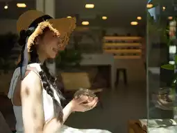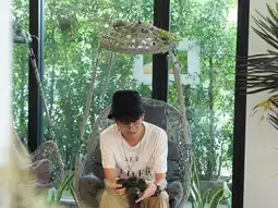 The spacious lobby has work and lounge areas, and you can even take photos with a chameleon. You can also browse the beautiful photo gallery.