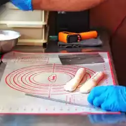 • The chewy dough is made from sweet potatoes and purple sweet potatoes. It's really good. It's so good. You have to try it.
