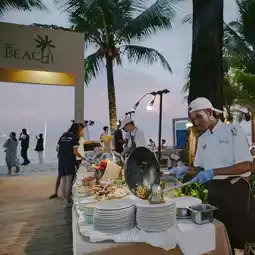 The most fun at The Beach Phuket on November 23rd, packed with concert activities and letting your heart break with the music, Sen Bang, If I Was Him from the band INDIGO, DJ KAY, a famous DJ, Oksana's dancing girls and fire twirling show, and enjoying the international buffet that I must say is very delicious, amidst the atmosphere of the sea view, the sunset at Bangtao Beach 🌤️✨