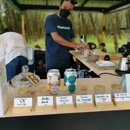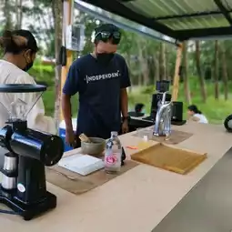 For coffee lovers who love nature, don't miss this shop. A trendy slow bar style cafe that has great coffee, desserts, and a camping atmosphere in a rubber plantation, very close to nature.