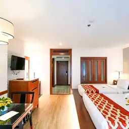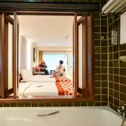 Here, there is a shuttle service to Patong Beach on a schedule. The room is spacious. The room that Tong stayed in had a beautiful view of the swimming pool from the balcony.
