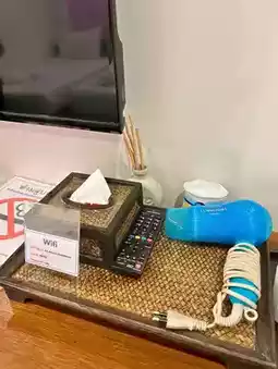 The bathroom had all the amenities, including towels, face towels, and a hair dryer. It was worth the price.