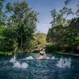 There is also a Jacuzzi inside. The view from the balcony that we chose was by the lake. I really like it. The atmosphere is super nice. At Renaissance Phuket, there are 2 swimming pools. This is the area before the beach. There is a pool for children and for those who like privacy or a natural atmosphere.