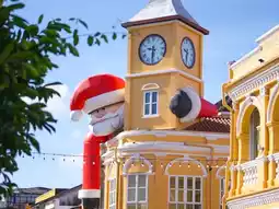 Starting with the yellow building at the Standard Chartered intersection, a place that everyone who comes to Phuket must not miss checking in. Here, let's take pictures with Santa Claus who is secretly clinging to the building. Plus, there is a bow on the building that looks like a gift box.