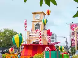 The second spot is the clock tower in the middle of Phuket City. It is decorated with gift boxes and sunflowers so that we can take beautiful pictures to post and show off to our friends in Phuket.