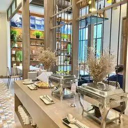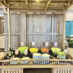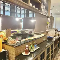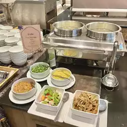 🥣The breakfast room here is in another building next to the hotel, spacious, lots of seats, with a variety of menus to choose from, including drinks, tea, coffee, egg menus, rice porridge, rice dishes, noodles, salads, fruits, bread, pancakes.