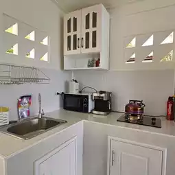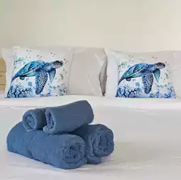 There are 2 types of rooms: Sea View with 1 extra bed, Bungalow with 2 rooms, a room for children with 2 bunk beds, and a room for adults with 1. Both rooms have kitchens.