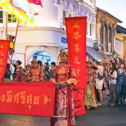 The event takes place on Thalang Road and Phang Nga Road, and features activities at the Standard Chartered Intersection (or the Yellow Building). The event features beautifully decorated dragon arches and Chinese lanterns dotting the streets of Phuket's Old Town.