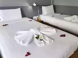 The Rubber Hotel - Sha Extra Plus is a hotel in Thalang, near the airport, with affordable prices, quiet and peaceful atmosphere, and complete amenities. It features a swimming pool, sea-view bedrooms, a fitness center, a ping pong table, and bicycles for use. Breakfast is served as a Thai-European buffet. Nearby, there is the Thalang Hospital, 7-11, and a school sports field. The rooms are clean, with full facilities, offering great value for money. It's very peaceful and close to nature, making it an ideal place to stay. Highly recommended.