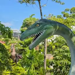 It's like we've really been transported to the world of dinosaurs, created by the team that made the movie Jurassic Park, I must say that the work is flawless. Come in the evening, they will open the lava volcano as well