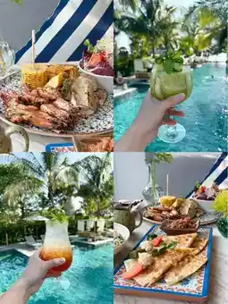Let's talk about the common area of the hotel. There are 2 swimming pools: Sol and Luna. One is in the center of the hotel like an oasis, and the other is on the beach. Both are beautiful. You can take a lot of pictures. In addition, there is a spa zone that is very beautifully done. There is also a fitness center, bar, and a complete restaurant. And because Melia is a hotel brand from Spain, the food is very Spanish. I personally like it very much. There are also Thai and Western food.