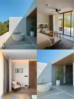 Melia Phuket is a five-star hotel on Mai Khao Beach. The accommodation is a total of 100 private villas, both with private bathtubs and private pools. The villa design is modern, using straight lines, angles and white as the main color. It has a tropical Mediterranean style. Overall, it is very beautiful and luxurious. The atmosphere is very private.
