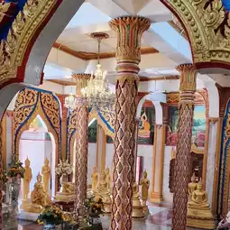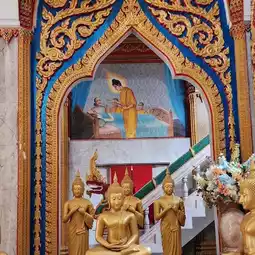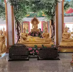 Next, visit the nearby Chalong Temple, where, in addition to the main temple, there are several smaller temples scattered around, some of which are still under construction. Shoes must be removed outside the main temple before entering, and you can go up to the third floor. Despite the hot weather, it is quite cool on the third floor. The interior is decorated with dazzling gold, and you can worship inside the temple where there are not too many tourists.