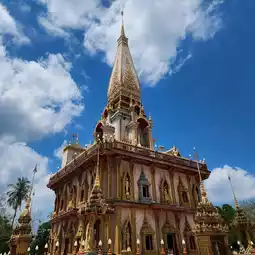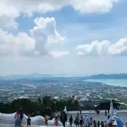 Phuket's Big Buddha and Chalong Temple are major attractions on the island, located in the Kata area. Although there is no charge for entering the temple to worship, it is important to dress respectfully; sleeveless tops and shorts are not allowed unless they reach the knees, otherwise entry is denied. The Big Buddha is on the highest hill on the island and can be seen from afar. There is no public transportation available, so if you're not on a tour or driving yourself, taking a taxi is not expensive. The view of the coast and the flat houses from a distance is beautiful and refreshing. Walking around the Big Buddha takes just over an hour. If you're interested in elephant riding, off-road forest vehicles, or taking photos with tigers, all these activities are available along this road.