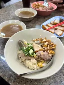 The most delicious dry rice porridge shop in Phuket. The queue is also long. If you come before 6 pm, there won't be many people. The menu that you must try is the normal dry rice porridge, which is rice with pork balls, crispy pork, offal, and fried garlic. But because the shop chooses good ingredients, the soup that they give is very delicious. If you come to Phuket and don't know what to eat, try eating dry rice porridge.