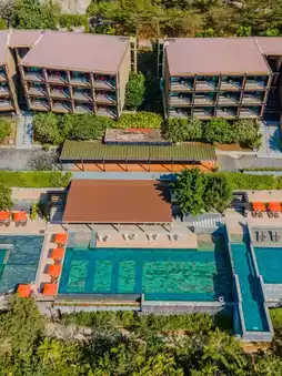 🏖️ Nestled atop a hill overlooking the serene Nai Harn Beach, SUNSURI Phuket offers a slice of paradise with a dash of luxury. Dive into their array of pools, with a 4-meter high diving board for the thrill-seekers!