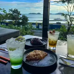 Baba Soul Cafe, a new check-in point. Baba Soul Cafe, a newly opened cafe in Sri Panwa Hotel. The atmosphere is not to be missed. It is very good. You can see the sea view, small and large islands, lined up, very beautiful. Especially in the evening, the view before the sun sets, the soft sunlight is good for the eyes, good for the heart. The surrounding area is surrounded by nature, like being in the middle of the forest. The feeling of sitting and sipping tea or coffee under a big tree at the end of Cape Panwa. It is convenient to travel. Plenty of parking, park under the building. There is an elevator in the parking lot. Press the elevator to the R floor. Baba Soul Cafe TU Bar Rooftop can walk across the bridge to the cafe. Cafe lovers, those who like to take pictures and check in should not miss it.
