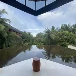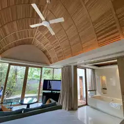 The room has a very beautiful view, comfortable sleep, there is a bathtub and a small pool in the room, almost no need to go anywhere else