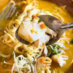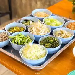 Served with over 10 types of unlimited fresh vegetables, as if they were brought from the market. Or you can eat them with Hat Yai fried chicken, steamed fish curry, boiled eggs, and fish cakes, which are also perfectly delicious.