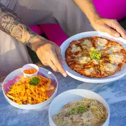 Beautiful swing with a Bali feel at Cafe Phuket View Point. Sit and listen to the sound of waves hitting the rocks and see the panoramic view of Phuket sea. There are many photo spots. In the evening, watching the sunset is another kind of beautiful. The shop has cakes, snacks, spaghetti, pizza and food. Along with spicy mayu salad, I must say it's very spicy at No Pork.