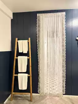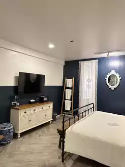Step downstairs, there is a cafe with a very good atmosphere. The shop is beautifully decorated, the bakery and drinks are delicious. Step upstairs, there are rooms. The room we stayed in was a Family room, which was larger than the other rooms and had a bathtub (there were only 2 rooms). The room was spacious, the bed was soft and comfortable in Blu Monkey style. Even the extra bed was very soft. The pillows and blankets were all good. In front of the room, there was free coffee and Ovaltine sachets. The refrigerator was in the middle, there was free water and orange juice. There was also an ironing board for use. I liked this. The room was very clean, the bathroom was clean, the water pressure was strong, the soap was fragrant, the air conditioner was very cool. Everything was perfect.