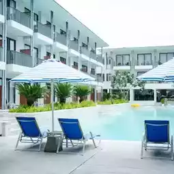 ✨It is a hotel with a good location, convenient to travel, not far from the city, parking is available, and there is also a cafe and bar by the pool, order drinks to sip and chill ~ This is a swimming pool, very well done, very well done, fun to take pictures, plus the rooms are affordable, there are many types of rooms to choose from, meeting every lifestyle. Anyone looking for a place to stay in Phuket with a minimalist feel and beautiful photos must come here.