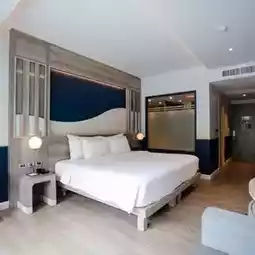 🌟For those looking for a place to stay in Phuket not far from the city, you must stay here, 'Seabed Grand Hotel Phuket', a super cute hotel, a very large swimming pool, fun to swim, decorated in a minimalist style, great mood, perfect for those who want to take pictures and create content, complete facilities, we stayed in a Deluxe Pool Access room, very convenient, you can walk down to the pool from the back of the room, the room is also spacious, there is a bathtub to soak in, very cool 💙