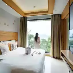 💙This time, we stayed in the One Bedroom Suites Ocean Coral Lounge, a room on the hillside with a very beautiful sea view. The room is divided into separate areas, with a living room, bedroom, bathroom, a good size, and a large glass window to view the sea. So awesome!