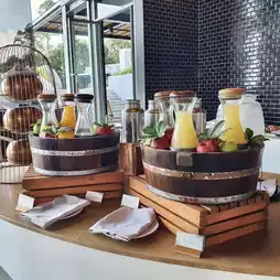 Accommodation with a sea view of Kata Beach, comes with a variety of full breakfasts 🧀🥗 Modern, new accommodation, good service, lots of photo spots, with 2 swimming pools, Infinity Pool style, you can watch the sunset in the evening or have a beautiful dinner at Twilight Sky Restaurant & Bar. 🌄